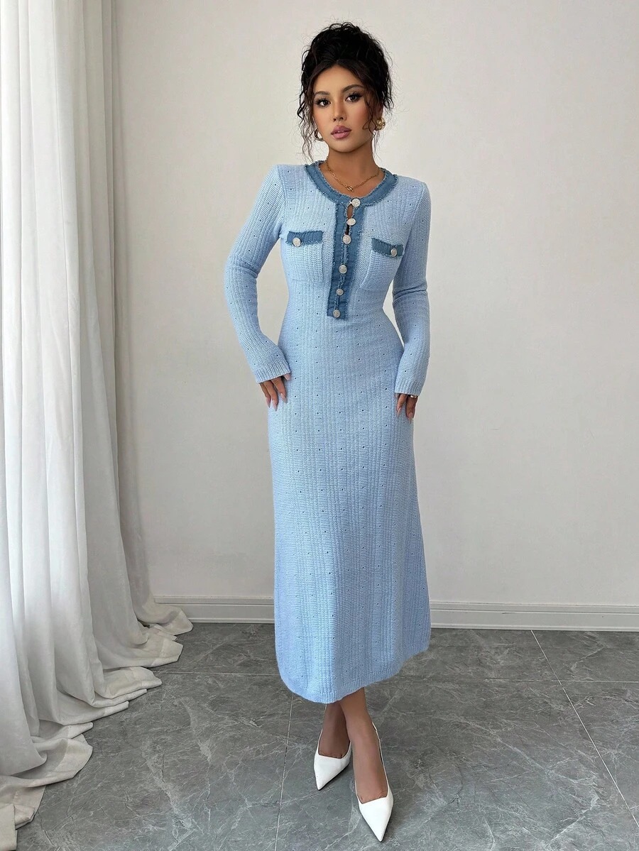 Rochie Tricotata Midi Hanna Bleu