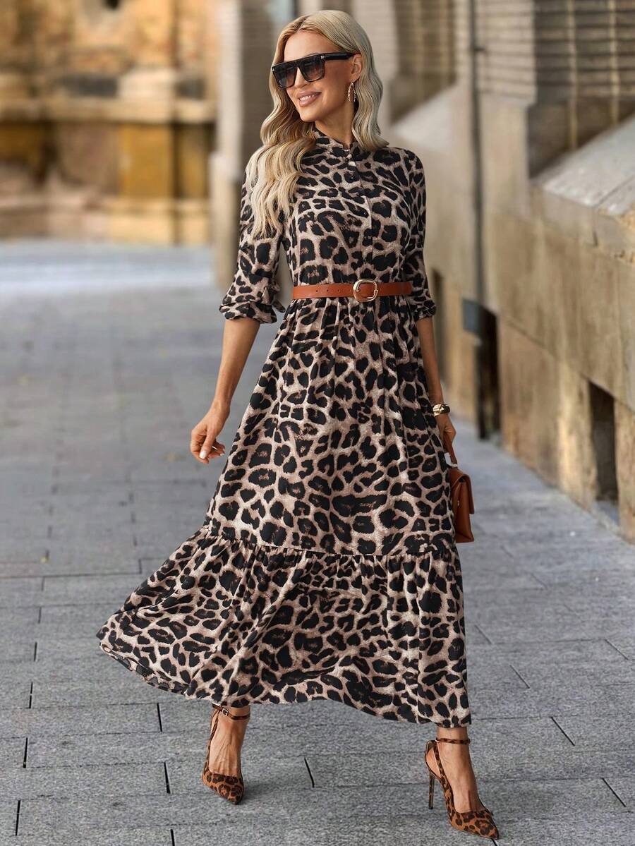 Compleu cu Pantalon Cecily Negru cu Portocaliu si Print Leopard