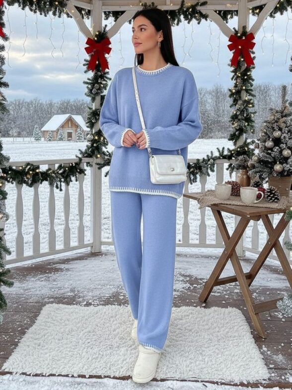 Compleu Tricotat cu Pantalon Chantalle Bleu