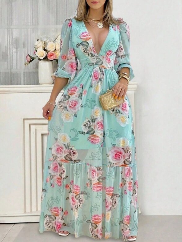 Rochie Lunga Andreea Bleu Inflorata