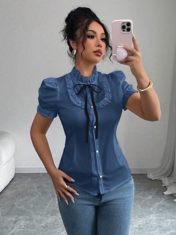 Bluza Dama Ariana Bleumarin cu Print Floral Albastru si Bej