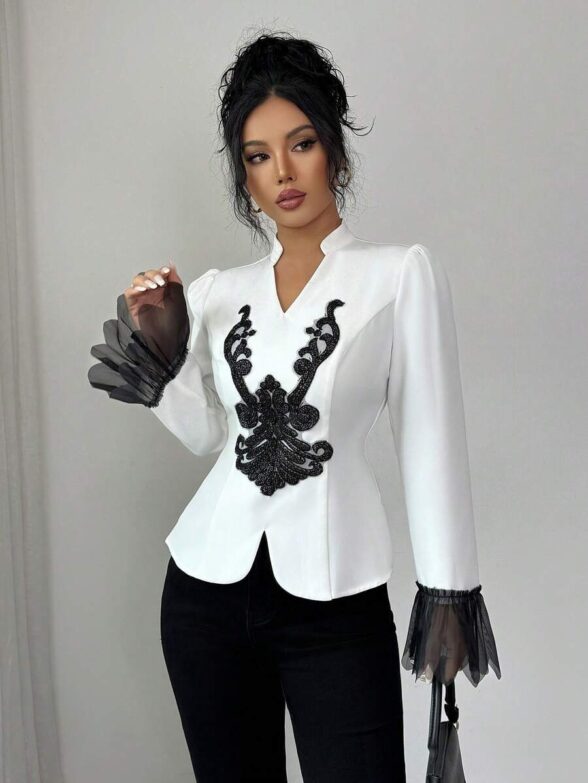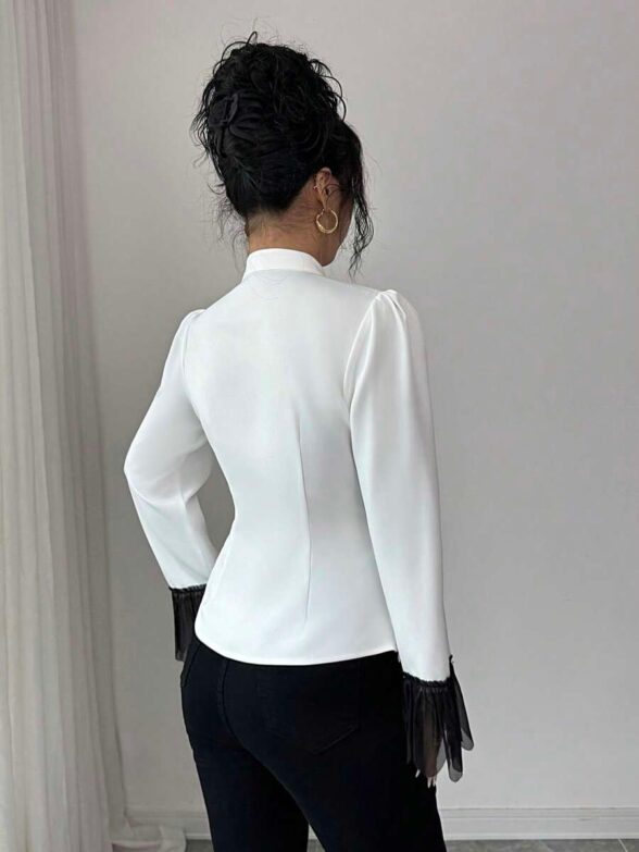 Bluza Dama Dalia Alba cu print Negru si Crem
