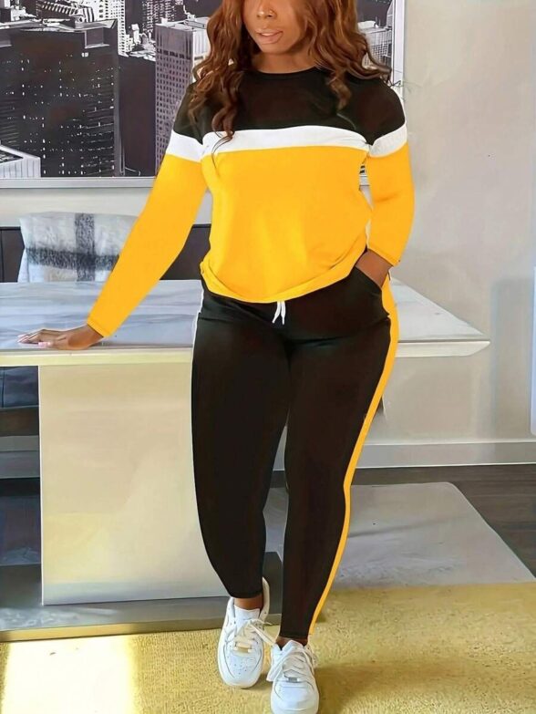 Trening Verra format din Pantalon Negru si Bluza Galbena