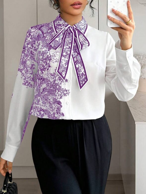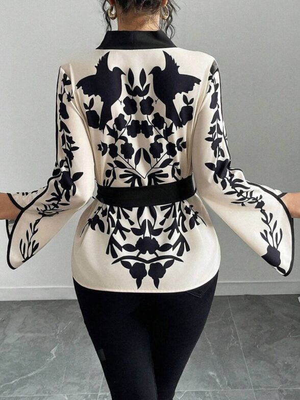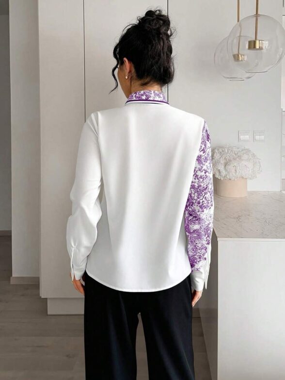 Bluza Dama Isla Crem cu Print Floral Albastru