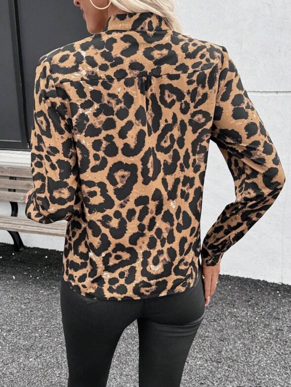 Camasa Dama Cornito Bej cu Print Leopard Negru