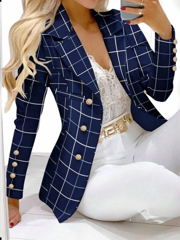 Sacou Dama Lorina Bleumarin in Carouri Albe ( fara captuseala )