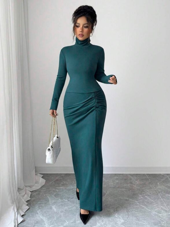 Prețul inițial a fost: 335,00 lei.134,00 leiPrețul curent este: 134,00 lei.Compleu Tricotat cu Fusta Lunga Nieve Bleumarin