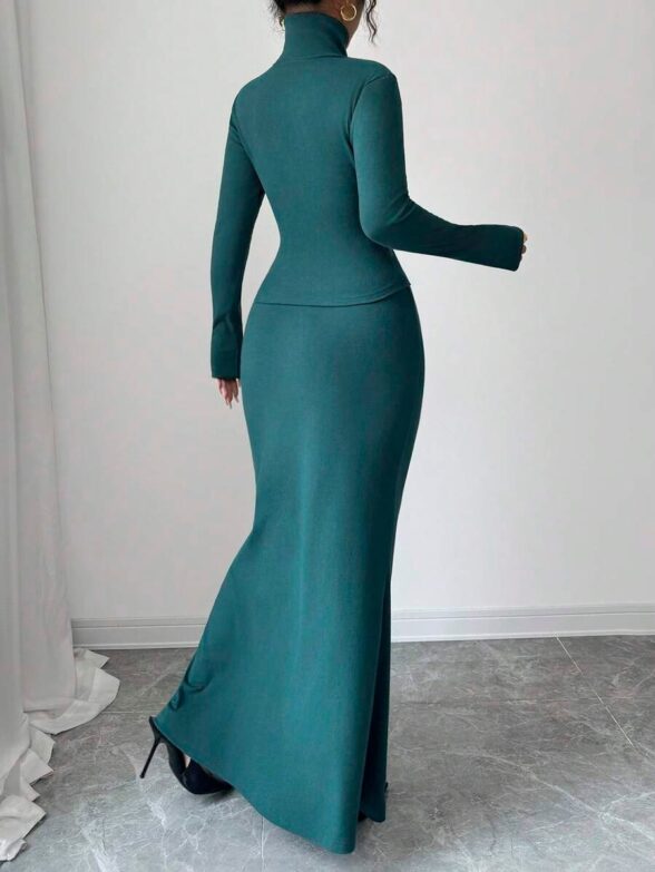 Prețul inițial a fost: 409,00 lei.163,60 leiPrețul curent este: 163,60 lei.Compleu Tricotat cu Fusta Lunga Nieve Albastru