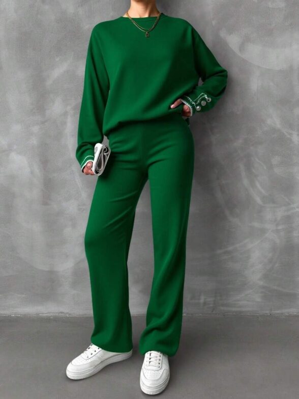 Compleu Tricotat cu Pantalon Camelia Verde