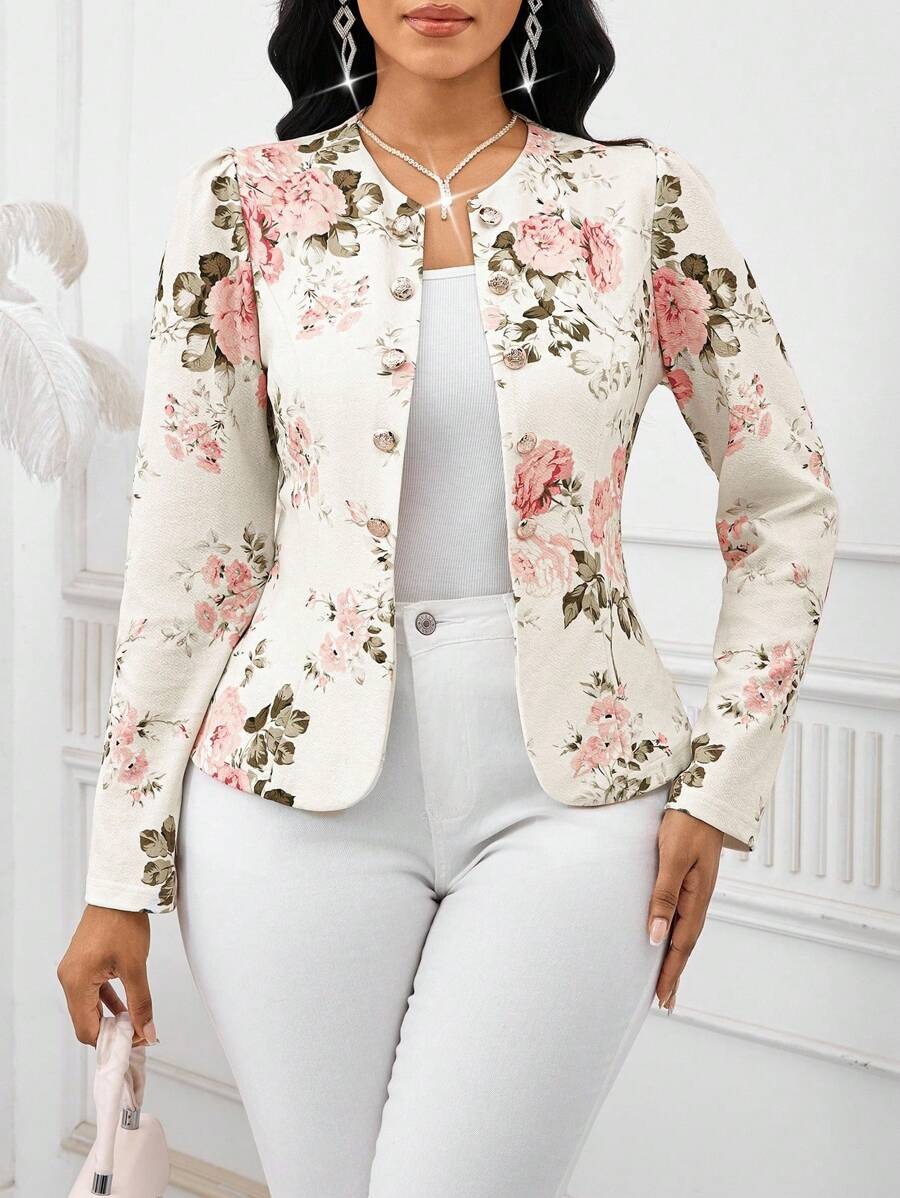 Sacou Dama Janice Alb cu Print Floral Roz ( fara captuseala )
