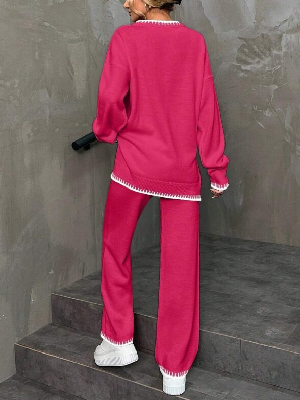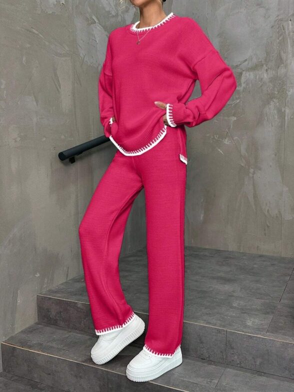 Compleu Tricotat cu Pantalon Ernesta Roz