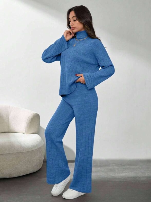 Compleu Tricotat cu Pantalon Rebeca Bleumarin