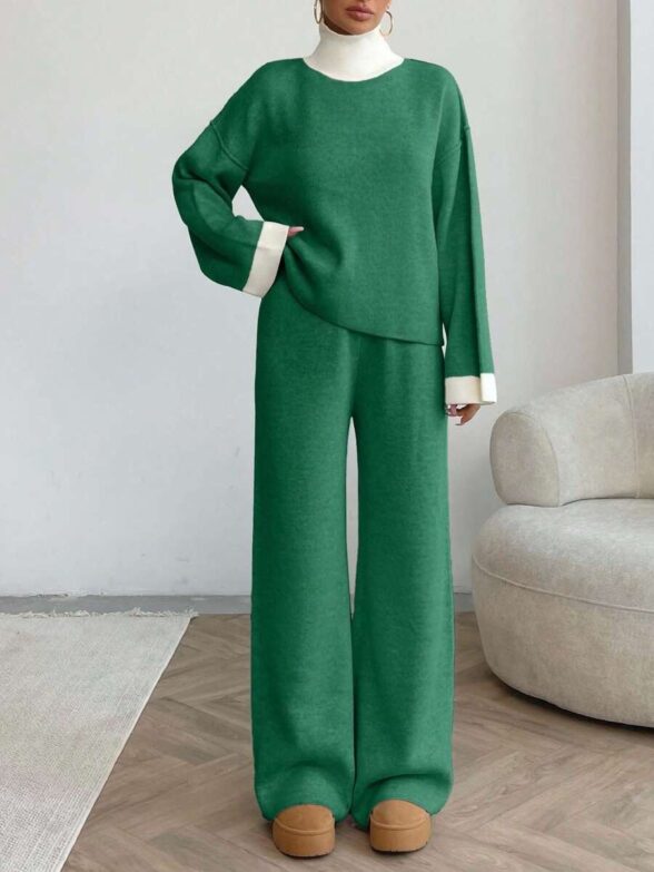 Compleu Tricotat cu Pantalon Adalgiza Verde
