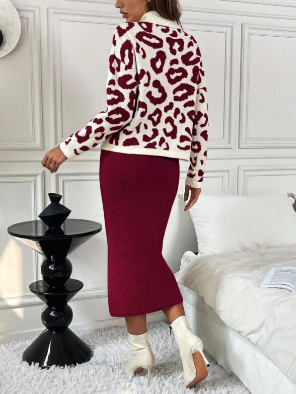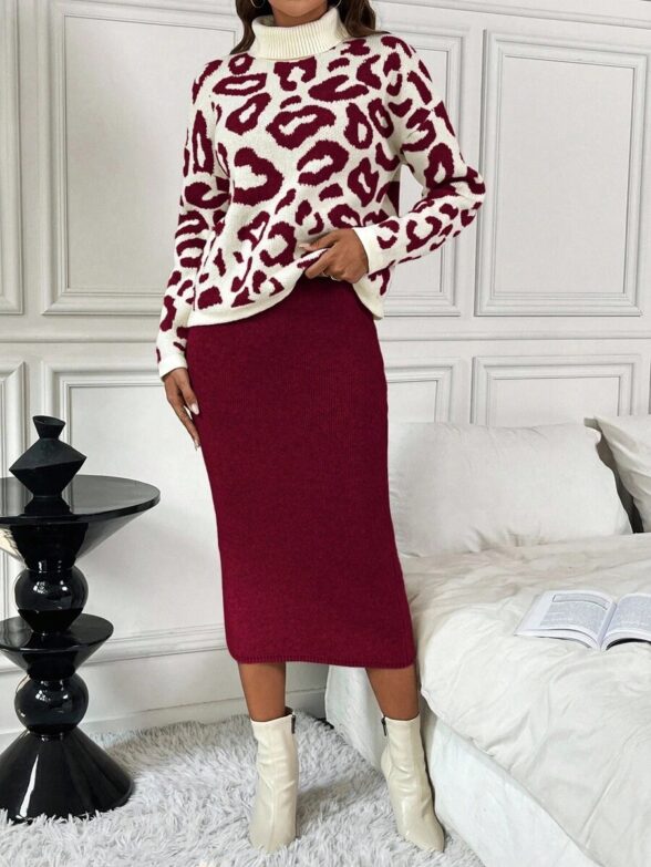 Compleu Tricotat cu Fusta Lunga Glade Grena