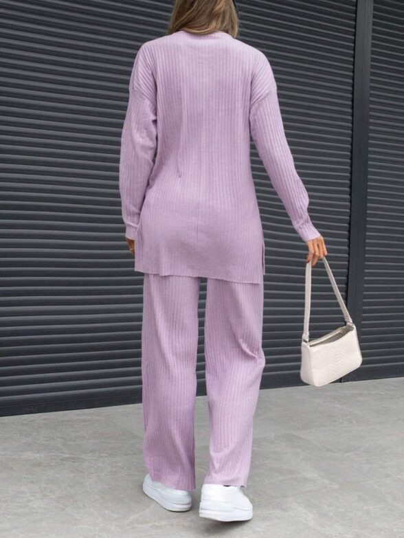 Prețul inițial a fost: 435,00 lei.174,00 leiPrețul curent este: 174,00 lei.Compleu Tricotat cu Pantalon Electra Roz Inchis