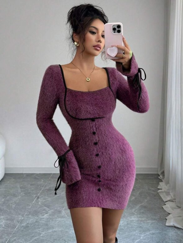 Rochie Scurta Suria Violet din Blana Artificiala