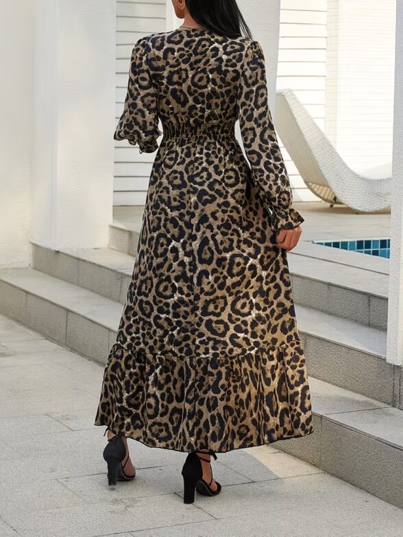 Compleu cu Pantalon Cecily Negru cu Portocaliu si Print Leopard