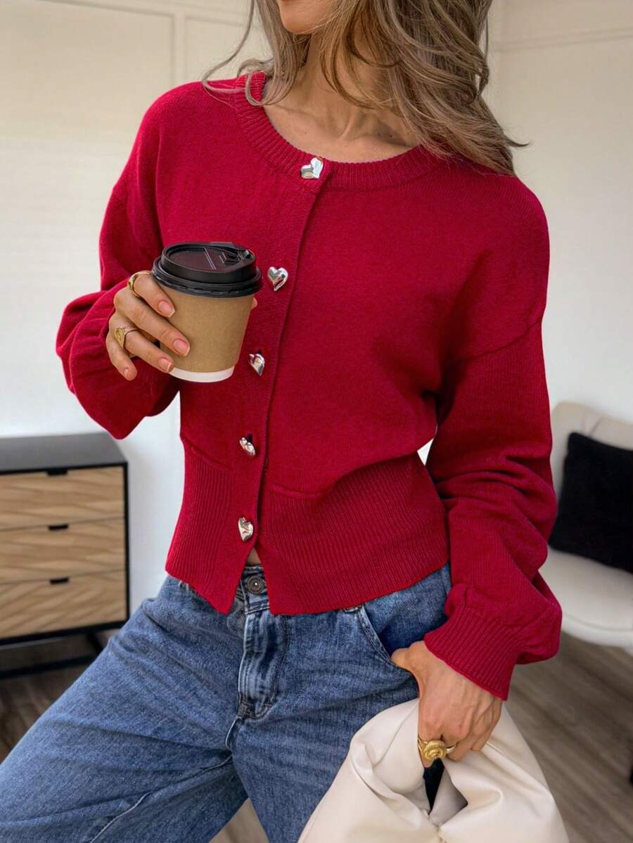 Rochie Midi Brianna Neagra cu Inimioare Rosii - Marimi Mari