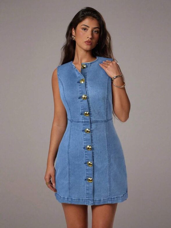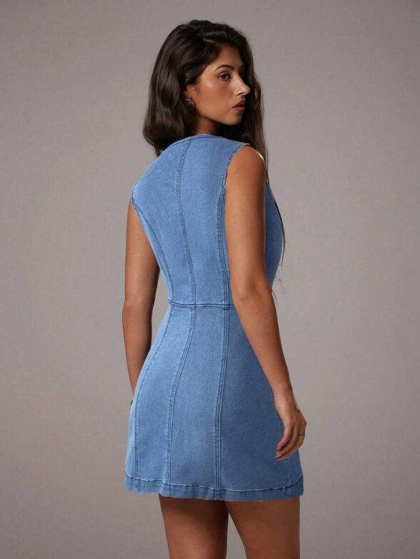 Rochie Scurta Martha Bleumarin cu Buline Albe