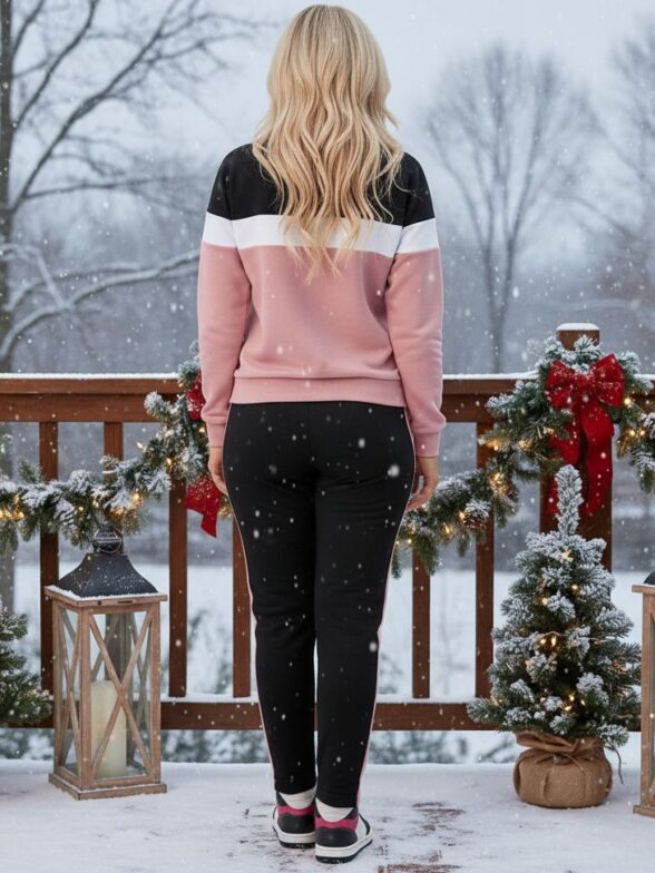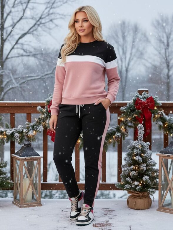 Trening Dama Demetra format din Pantalon Negru si Bluza Roz