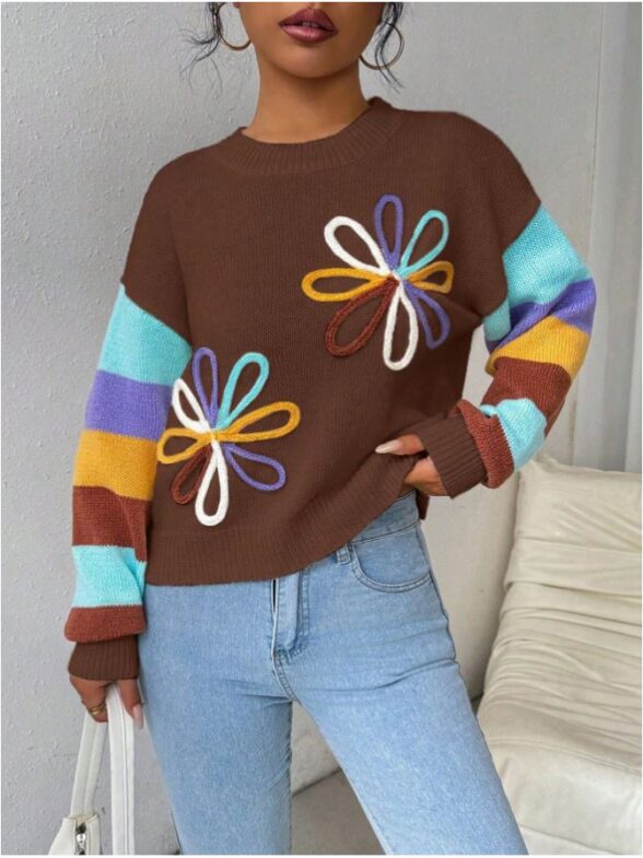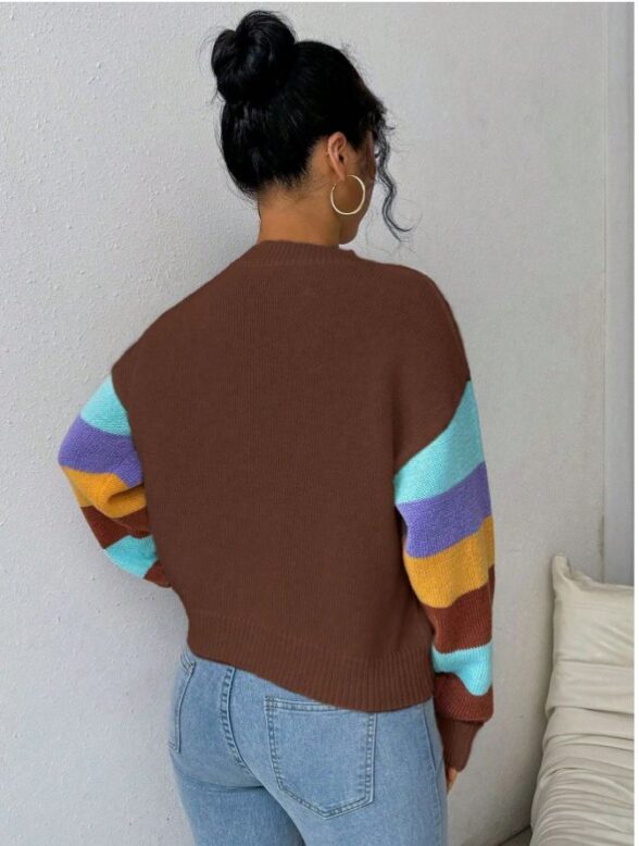 Pulover Tricotat Denisa Maro cu Dungi Multicolore