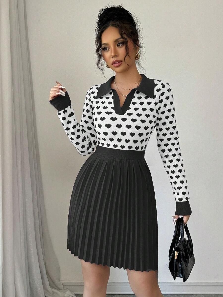 Rochie Scurta Daria Alba cu Inimioare Negre Plisata