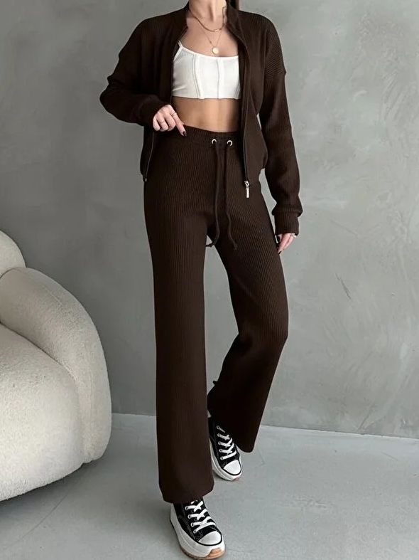 Compleu cu Pantalon Nanda Maro din Bumbac
