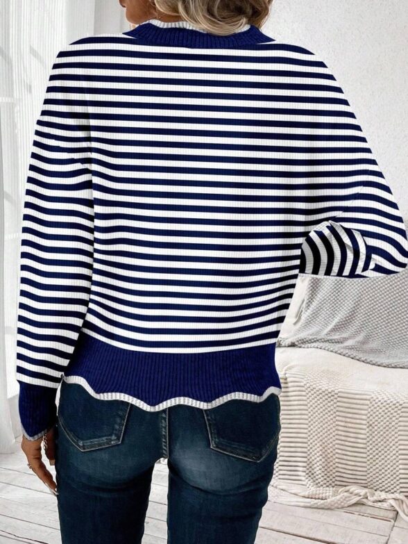 Pulover Tricotat Elisa Albastru cu Dungi Albe