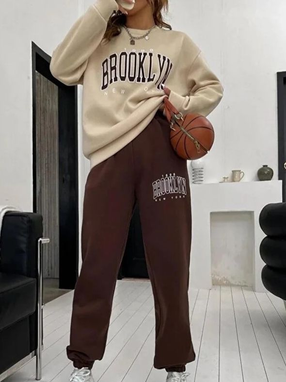 Trening Dama Petra format din Pantalon Maro si Bluza Crem
