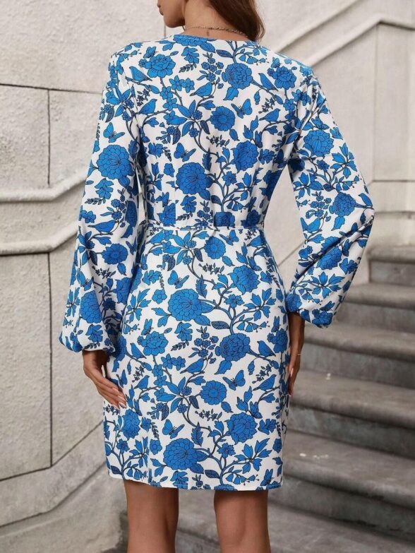 Rochie Scurta Fancy Alba cu Print Floral Albastru