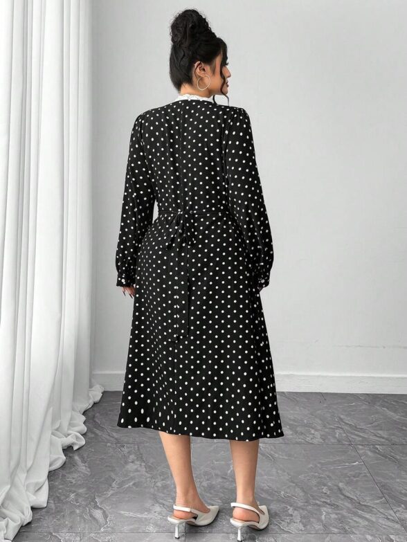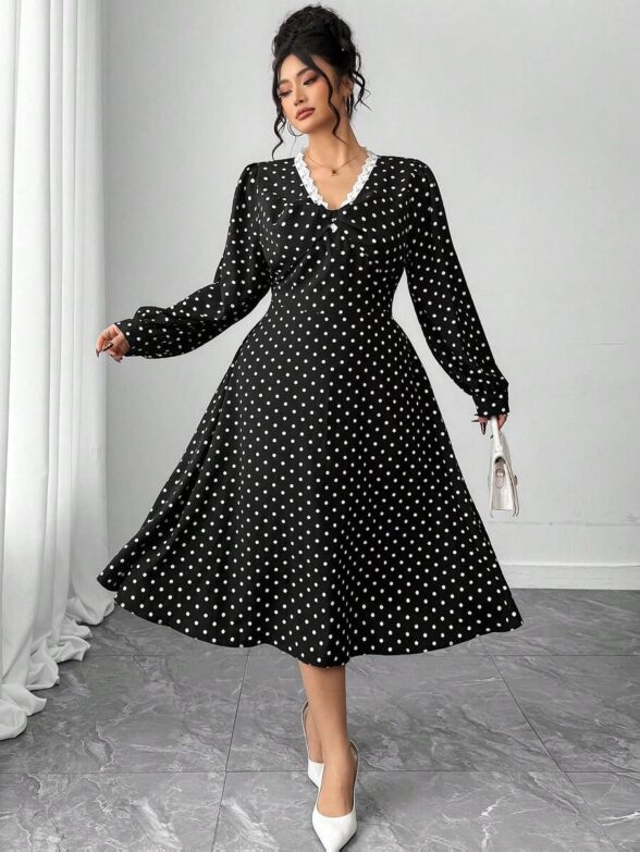 Rochie Midi Fausta Neagra cu Buline Albe – Marimi Mari