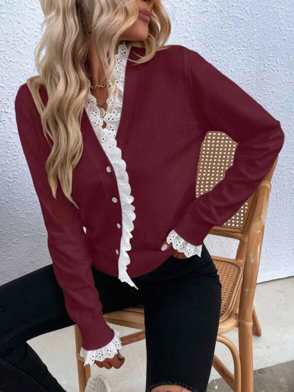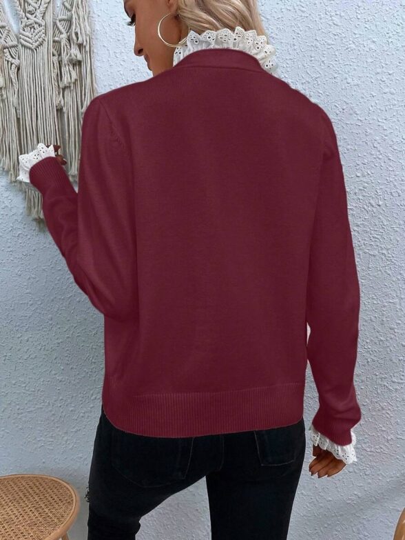 Pulover Tricotat Sarconi Bej cu Broderie - Marimi Mari