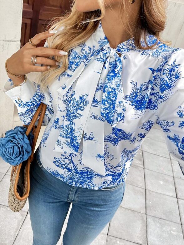 Compleu cu Pantalon Adriela Albastru cu Dungi Crem