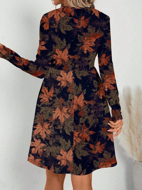 Rochie Scurta Madalina Mov cu Frunze – Marimi Mari