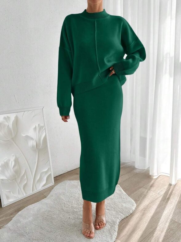 Compleu Tricotat cu Fusta Lunga Viona Verde