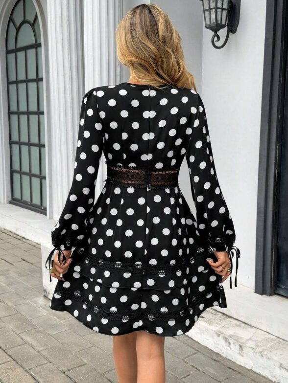 Rochie Scurta Gelmine Neagra cu Buline Albe