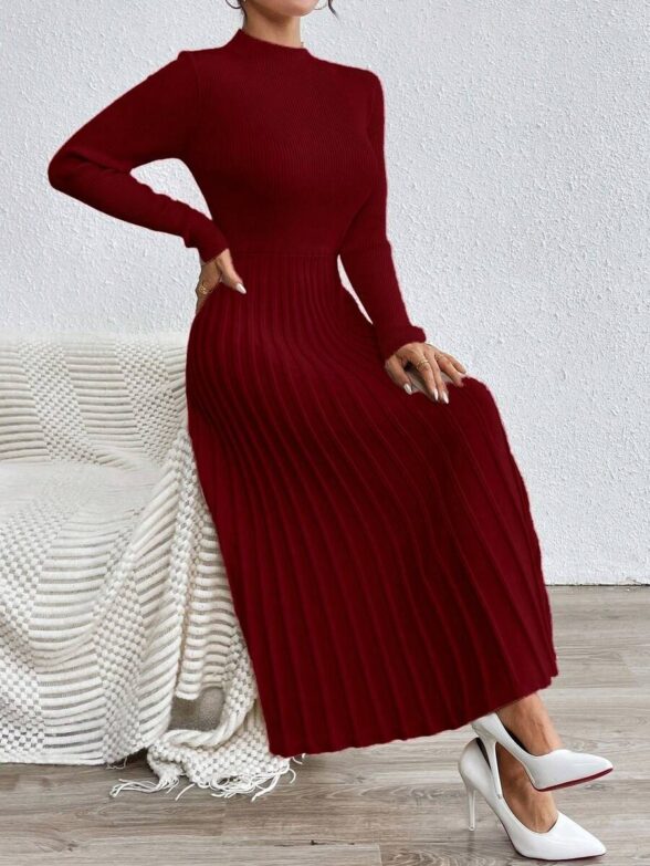Rochie Scurta Tricotata Ingalis Grena cu Model in Relief