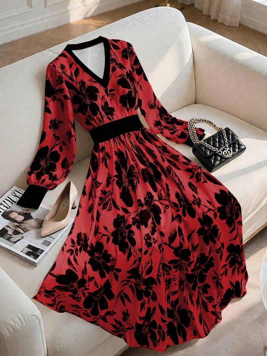 Rochie Midi Maddy Rosie cu Print Floral Negru