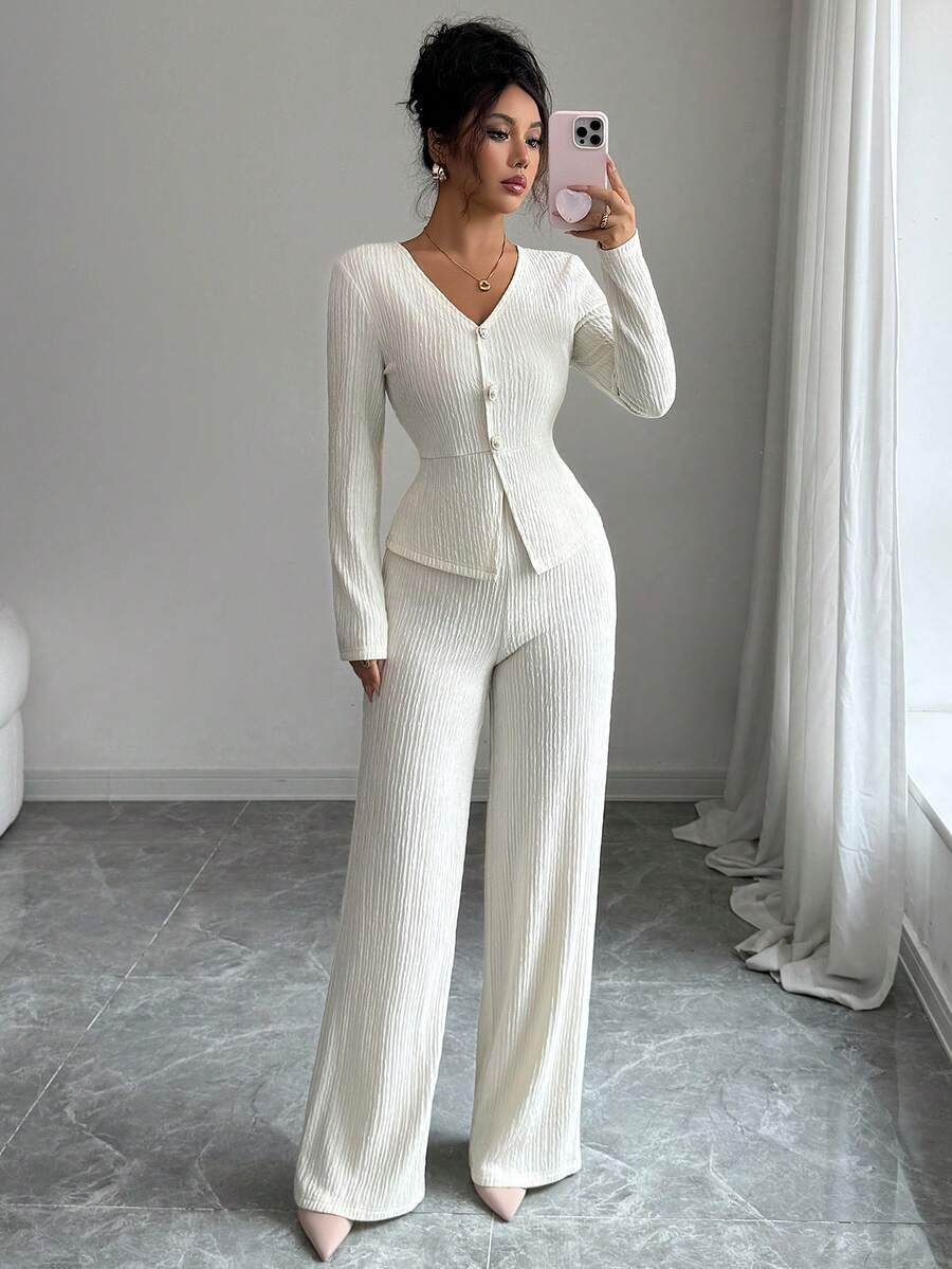 Compleu cu Pantalon Monika Alb