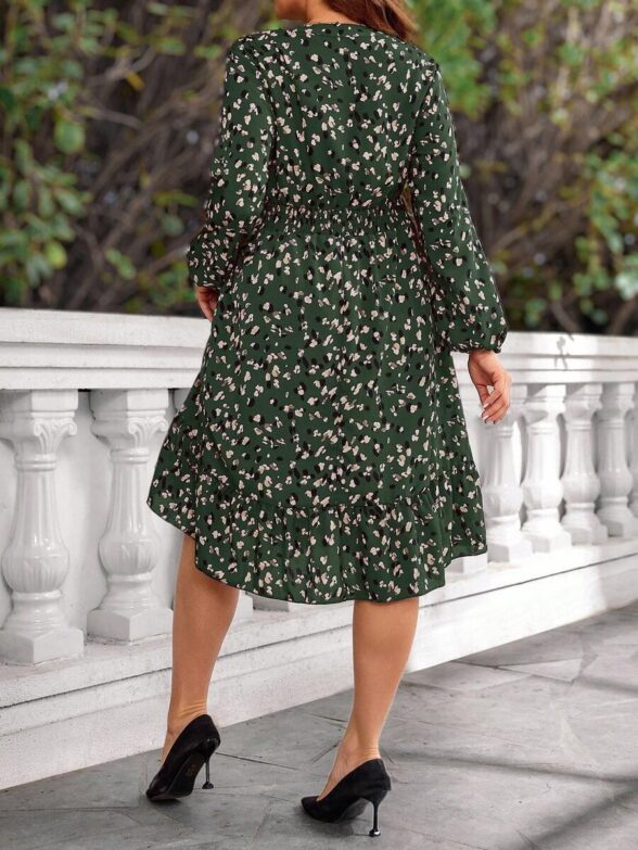 Rochie Scurta Iuliana Verde cu Print Alb si Negru – Marimi Mari
