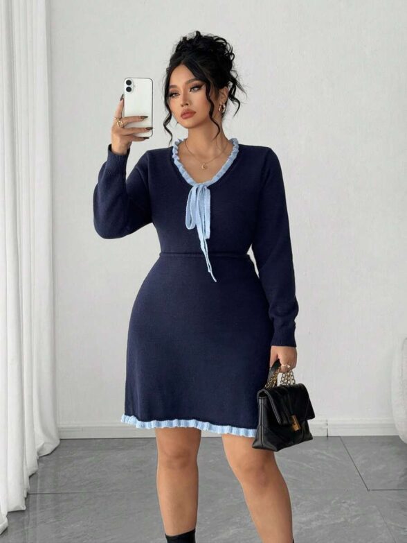 Rochie Tricotata Scurta Ivana Bleumarin – Marimi Mari