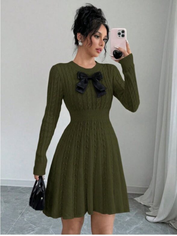 Rochie Tricotata Scurta Ivola Kaki