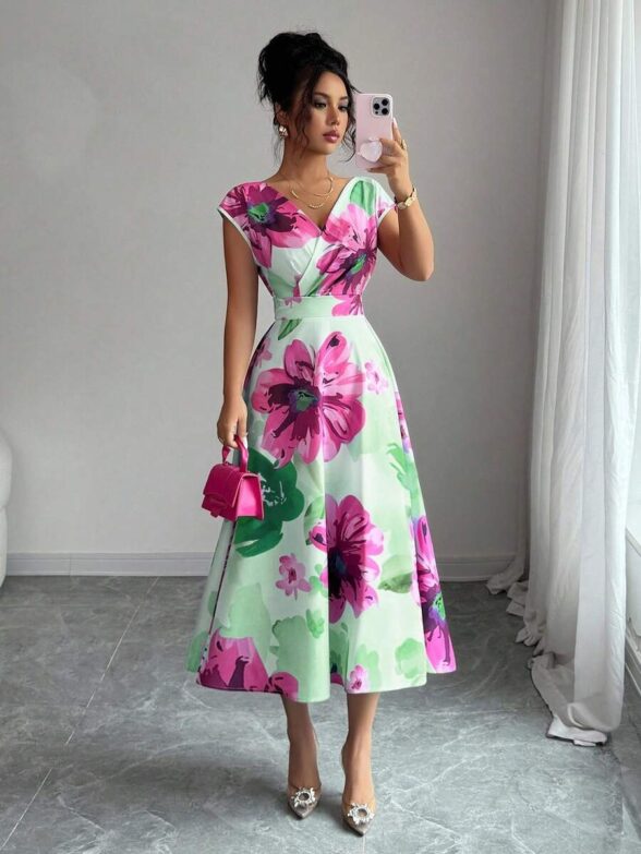 Rochie Lunga Johanne Vernil cu Print Floral Roz