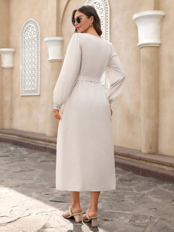 Trening Dama Sandra Verde cu Maneci Albe din Bumbac