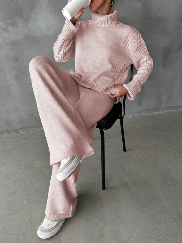 Compleu Tricotat cu Pantalon Lidia Roz