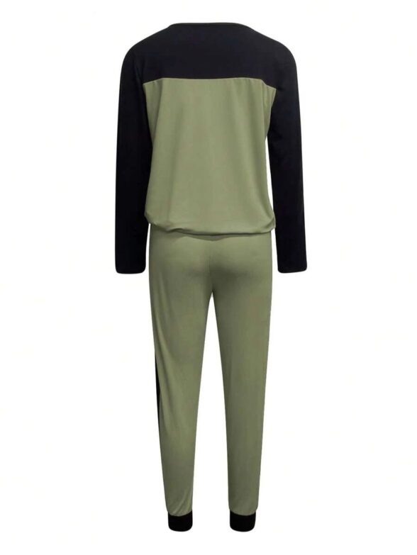 Compleu cu Pantalon Lilih Kaki cu Maneci Negre