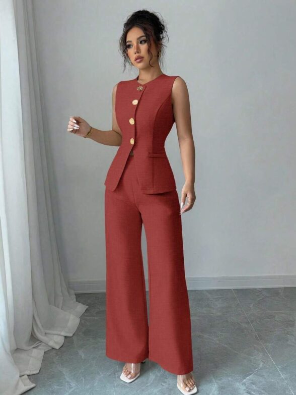 Compleu Loreena Caramiziu format din Vesta si Pantalon