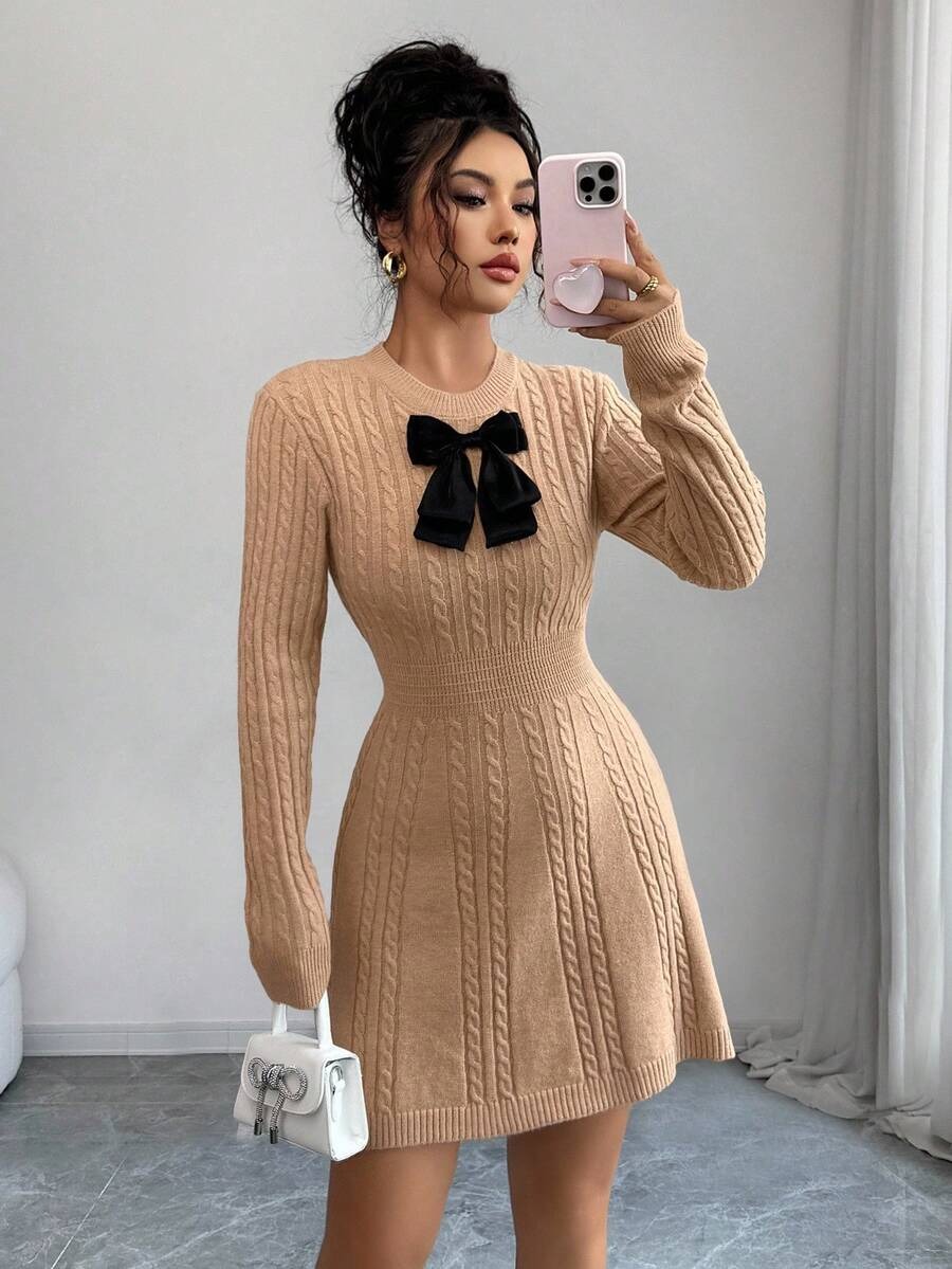 Rochie Scurta Tricotata Tensa Bej