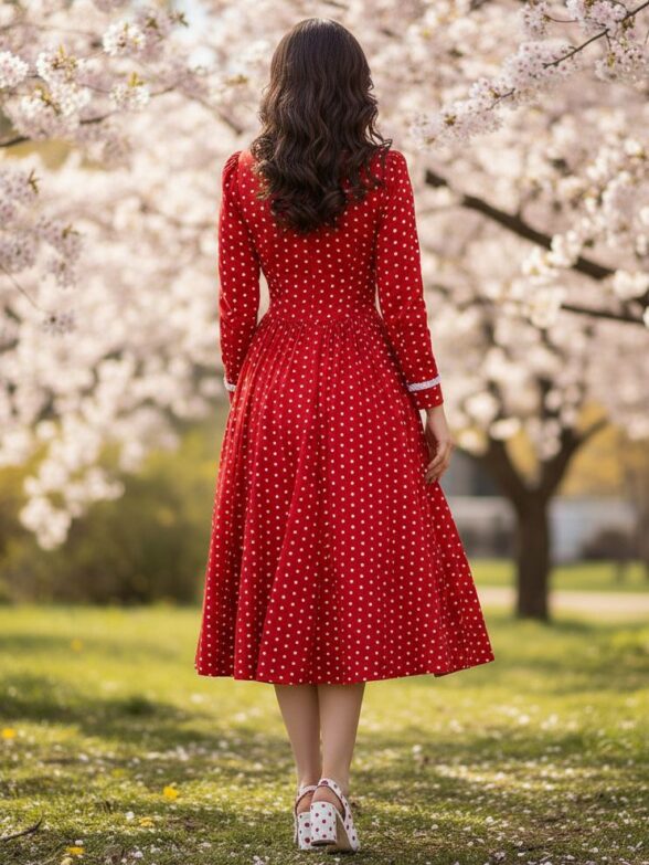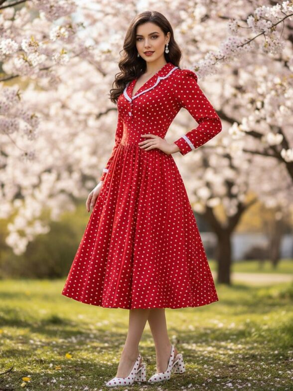 Rochie Scurta Tilma Rosie cu Buline Albe – Marimi Mari