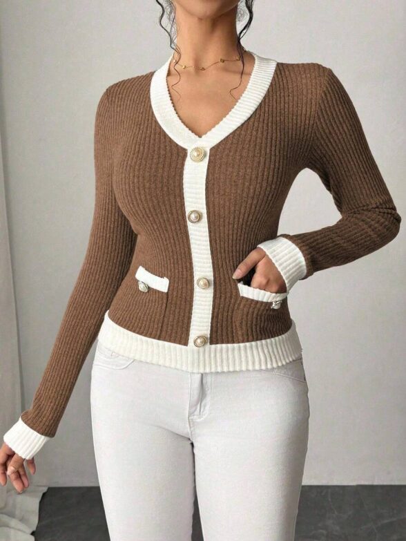 Pulover Tricotat Arnica Bej Inchis